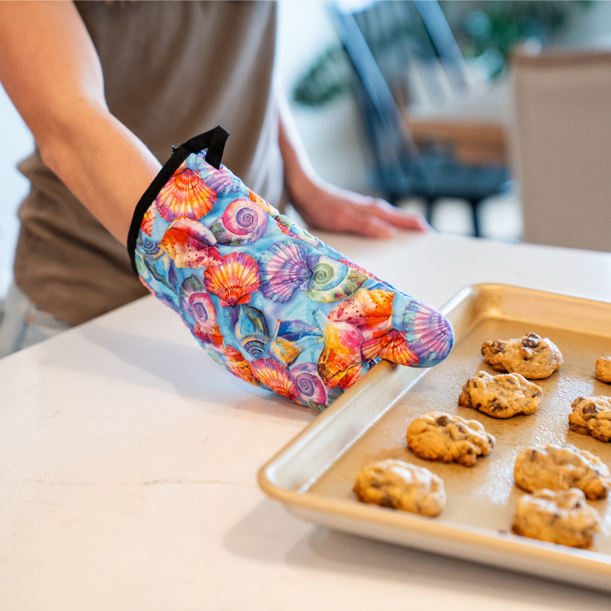 Bring a splash of ocean magic into your kitchen with this oven mitt featuring vibrant seashells. This design captures the beauty of the seaside in colorful detail. Perfect for beach lovers, ocean dreamers, or anyone who wants a touch of coastal charm while cooking.